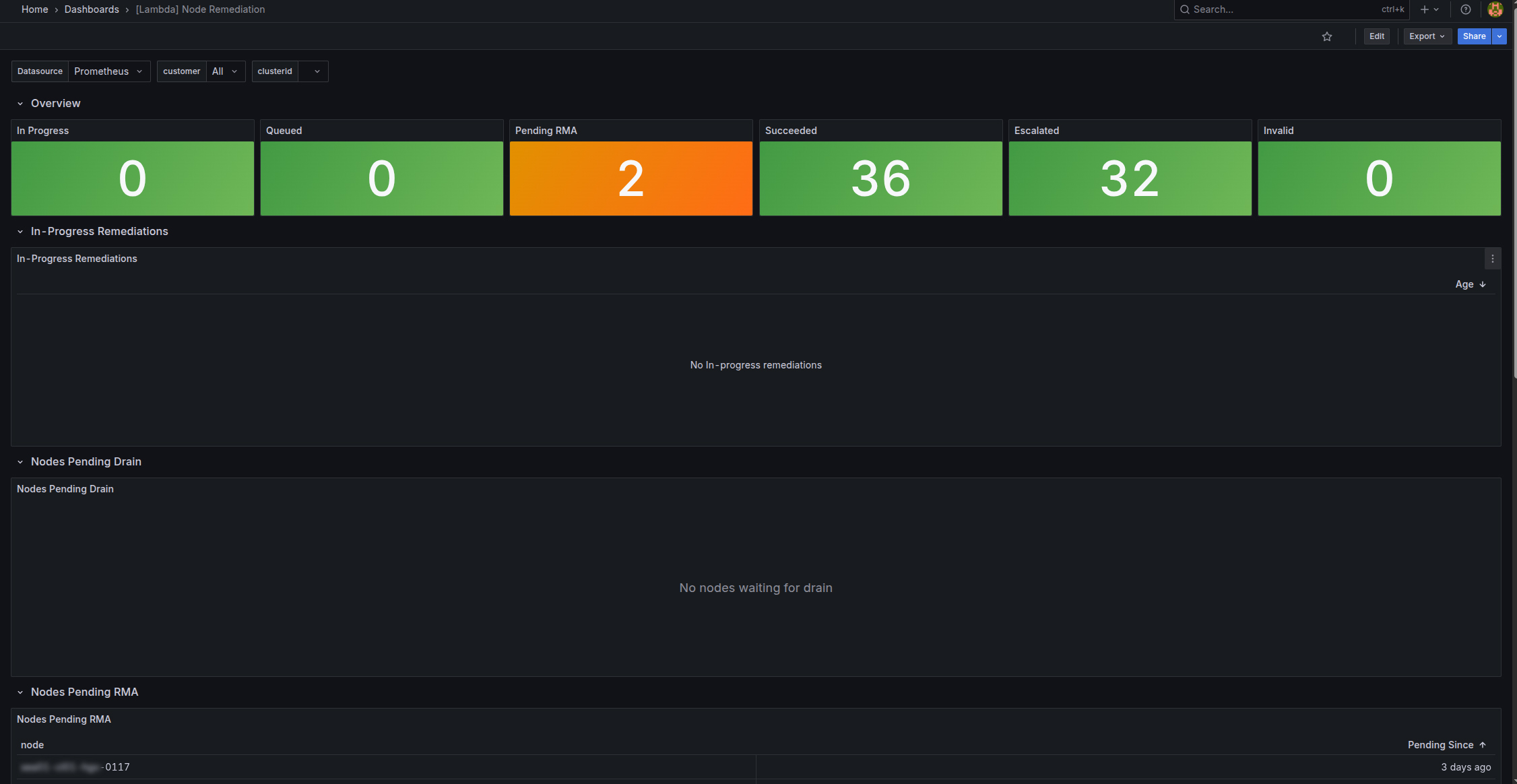 Monitoring remediation activity in Grafana#